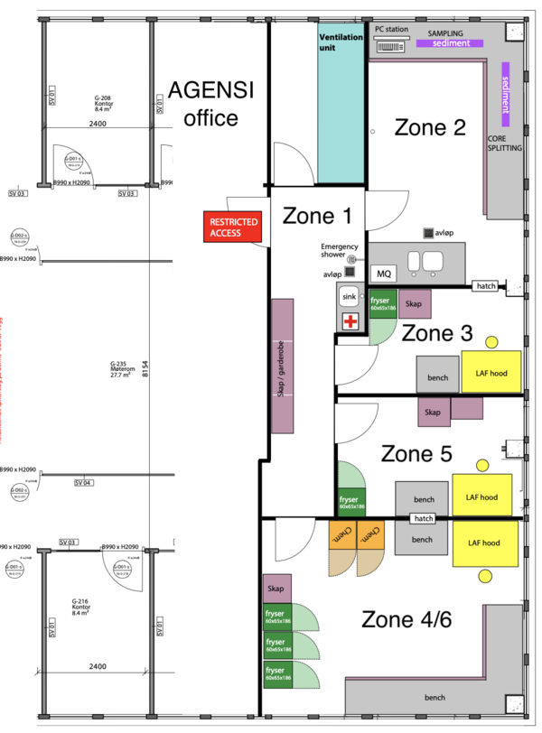 This Wiki is meant as a tool for the students and staff working in the AGENSI Laboratory. The research groups that use these laboratories have affiliation with NORCE Climate, the Bjerknes Centre for Climate Research and the Molecular Ecology Research Group (MERG) at NORCE Environment.